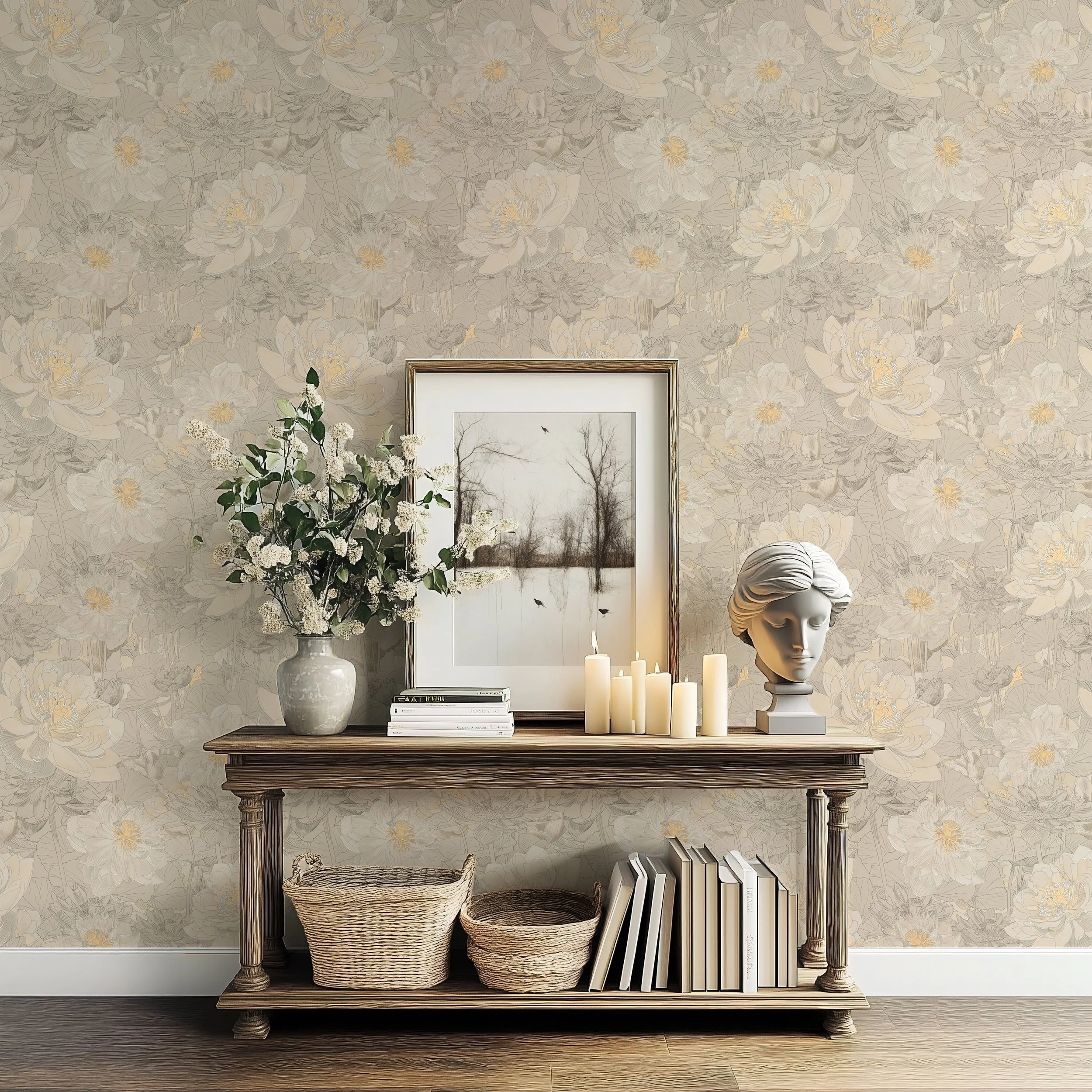I create hand-drawn botanical surface pattern designs for interior designers seeking calm, nature-inspired interiors. You can browse my full range of botanical wallpaper and fabric collections on the Shop + Collections page.
